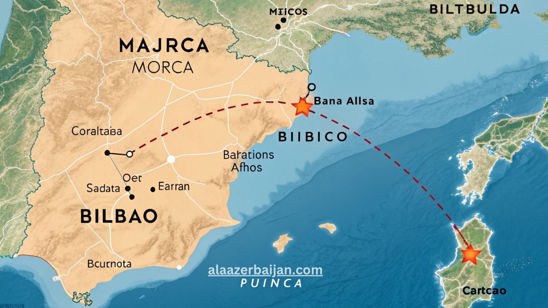 كم تبعد مايوركا عن بلباو بالخط المستقيم وكم تبعد عمليًا؟